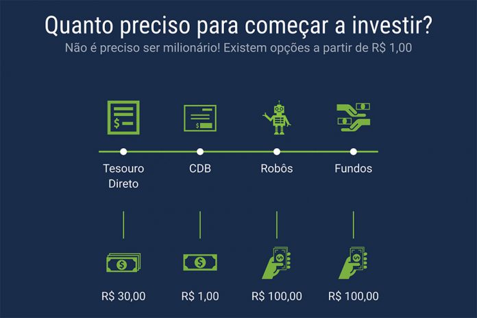 “Só quem tem muito dinheiro pode investir”. Esse é um dos maiores mitos que existe no mundo das finanças. A verdade é que só não investe quem não quer! Existem diversas opções rentáveis que exigem um investimento mínimo super baixo. Vou te mostrá-las mais abaixo, ok? O valor mínimo para investir nunca pode ser um empecilho.
